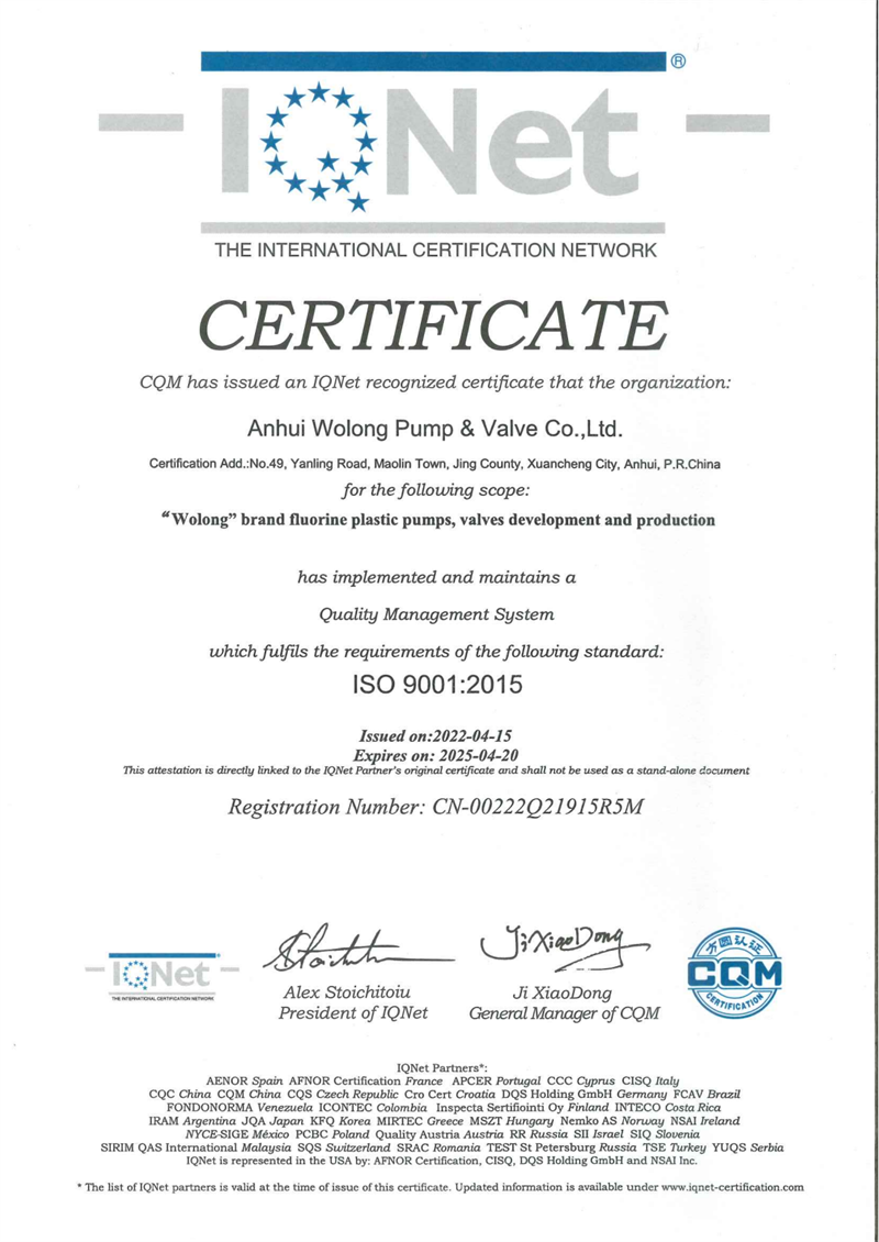 安徽臥龍專注生產(chǎn)和研發(fā)“氟塑料合金”泵閥產(chǎn)品的品牌
