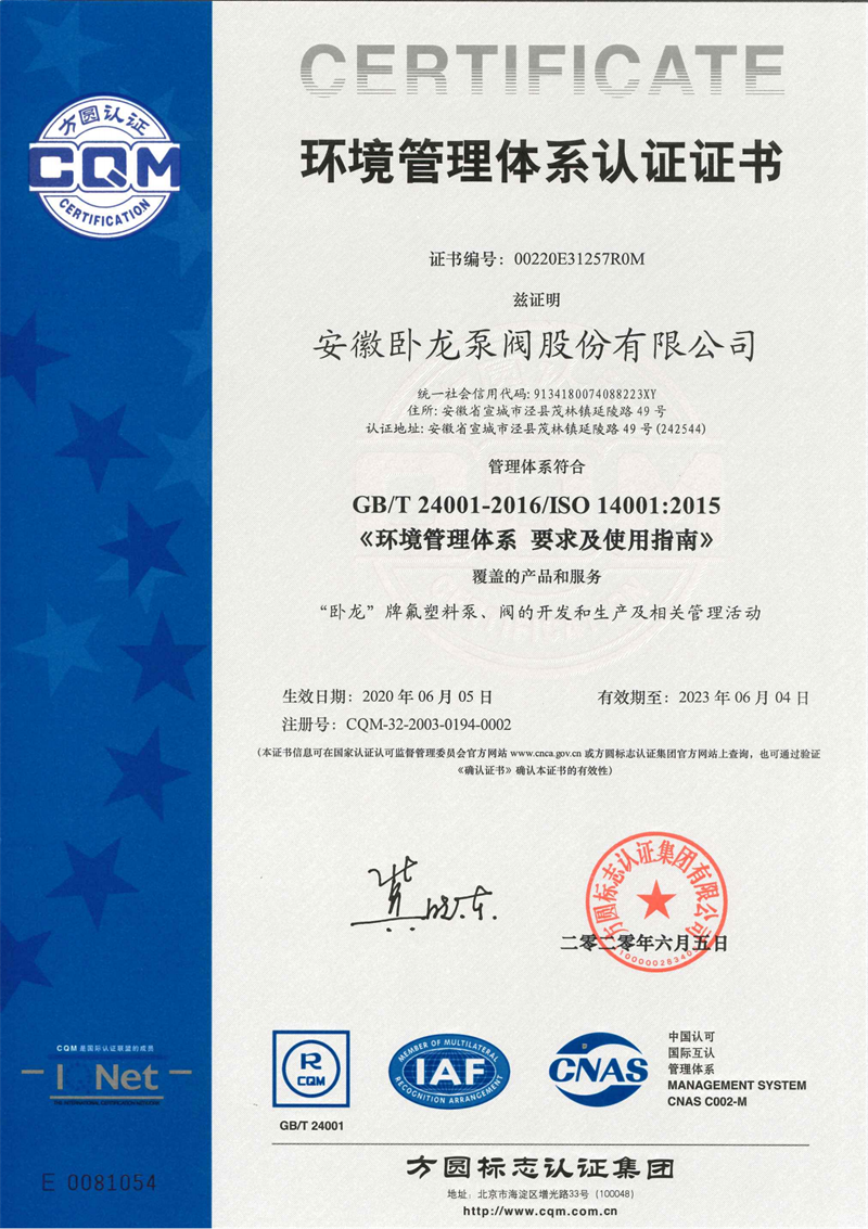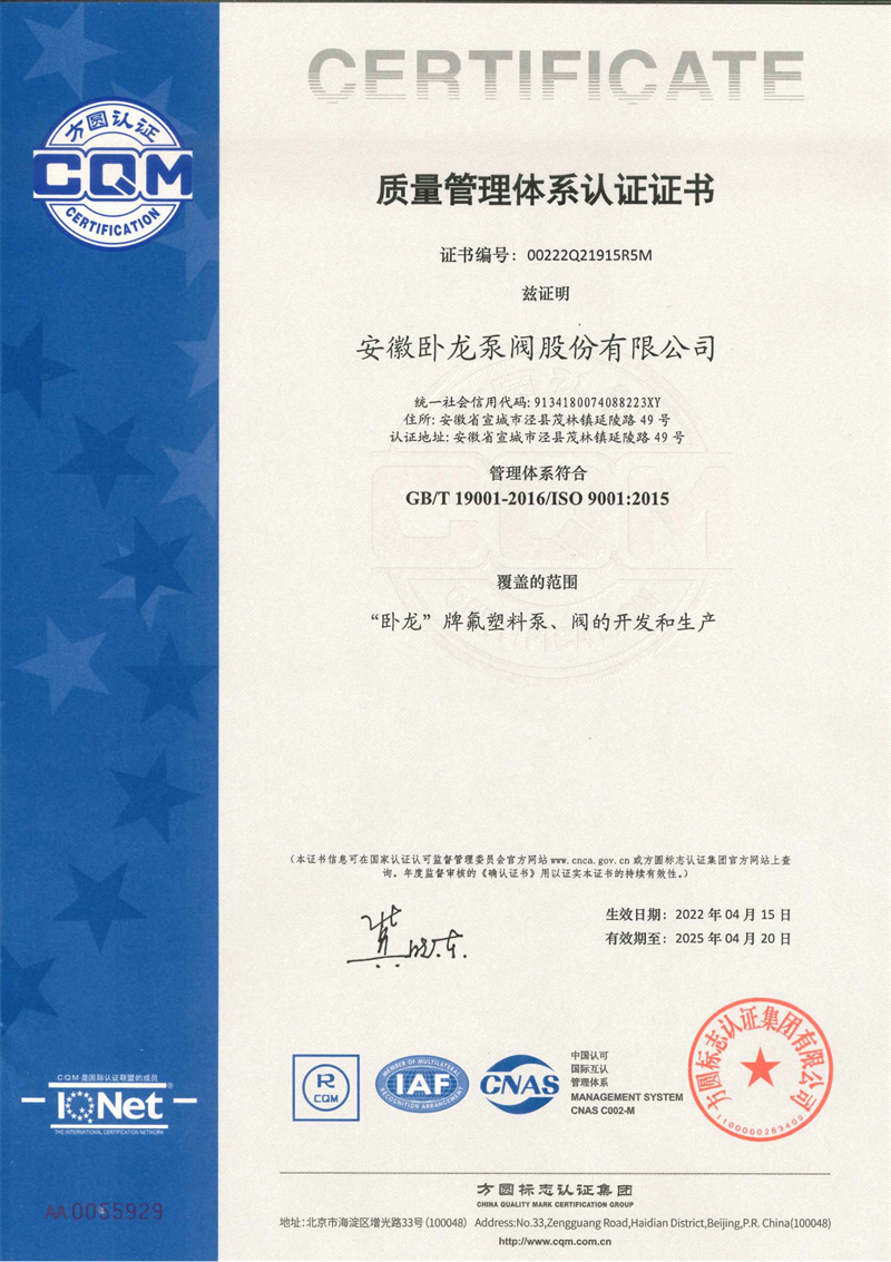 安徽臥龍泵閥股份有限公司:氟塑料泵閥產(chǎn)品生產(chǎn)和研發(fā)專家